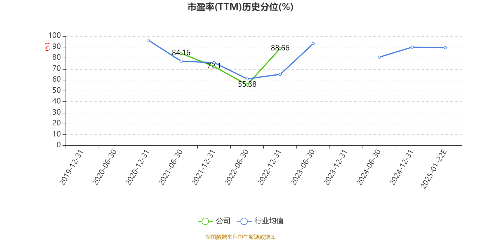 以本次披露业绩预告均值计算,公司近年市盈率(TTM)图如下所示: