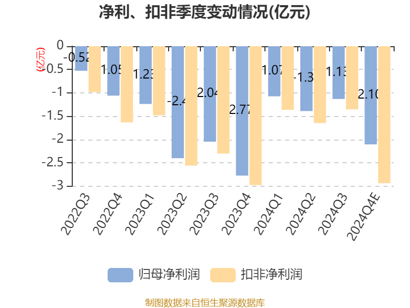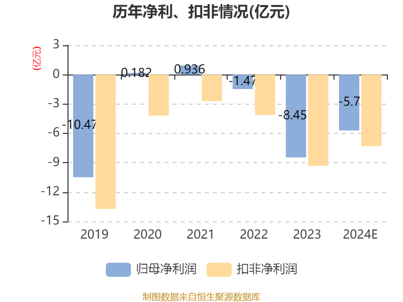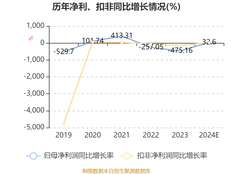 中证智能财讯华灿光电(300323)1月22日晚间披露2024年度业绩预告,预计2024年归母净利润亏损4.7亿元至6.7亿元,上年同期亏损8.46亿元;扣非净利润亏损6.3亿元至8.3亿元,上年同期亏损9.32亿元。以1月22日收盘价计算,华灿光电目前市盈率(TTM)约为-18.53倍至-26.42倍,市净率(LF)约1.73倍,市销率(TTM)约3.21倍。